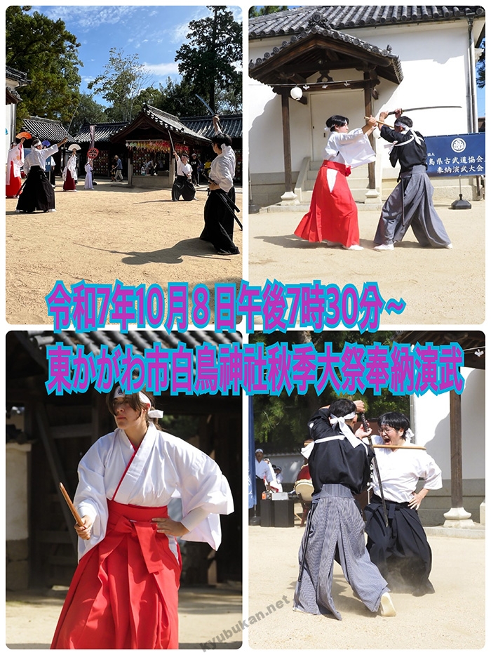 On October 8th, the NPO Tokushima Prefecture Kobudo Association will host the Shirotori Shrine Autumn Festival Kobudo Demonstration at the Shirotori Shrine Autumn Festival in Higashikagawa City, Kagawa Prefecture.